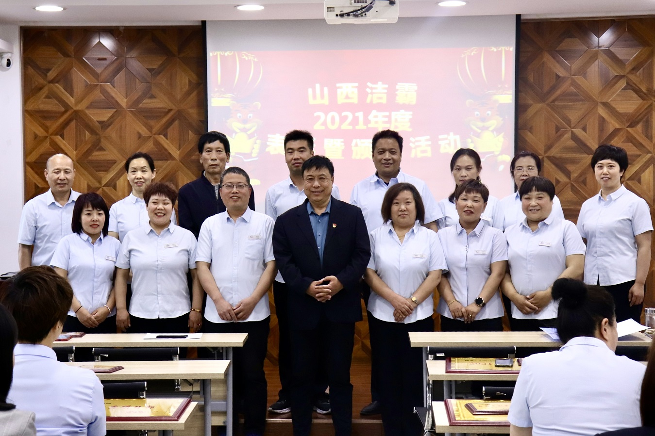 5月13日下午,晉城市潔霸清潔服務(wù)股份有限公司2021年度表彰大會在公司黨群活動中心召開。公司黨支部書記、總經(jīng)理程晉軍出席大會并致辭。公司全體管理人員及部分優(yōu)秀員工代表參加會議。