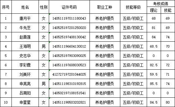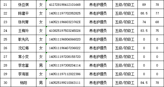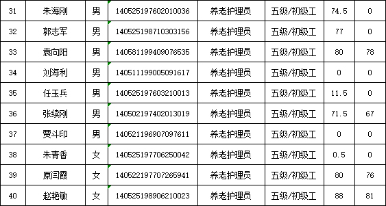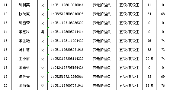山西潔霸清潔服務(wù)集團(tuán)股份有限公司職業(yè)技能等級認(rèn)定中心2026年1月22日第1批養(yǎng)老護(hù)理員初級認(rèn)定人員成績公示